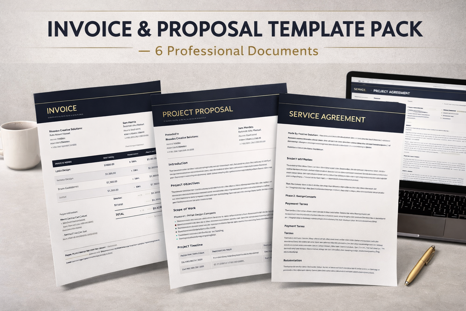 This complete Invoice & Proposal Template Pack includes 6 professionally designed Word documents that every freelancer, consultant, and service-based business owner needs.